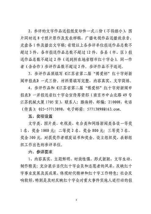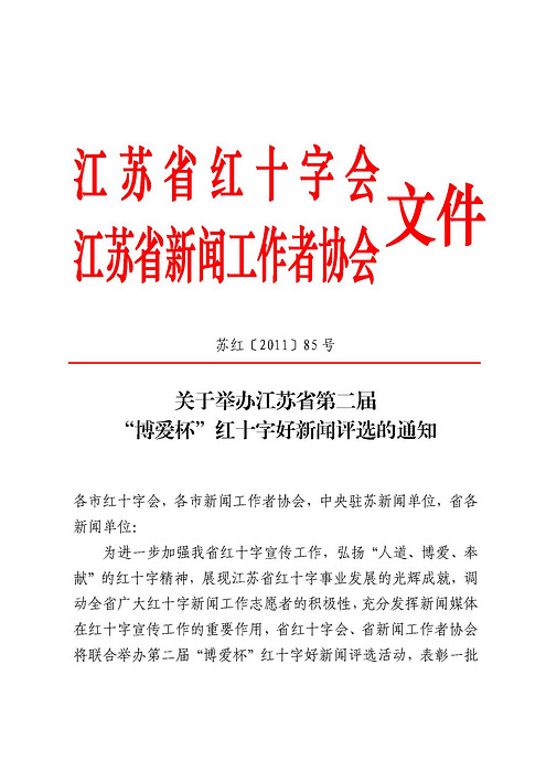 关于举办江苏省第二届“博爱杯”红十字好新闻评选的通知