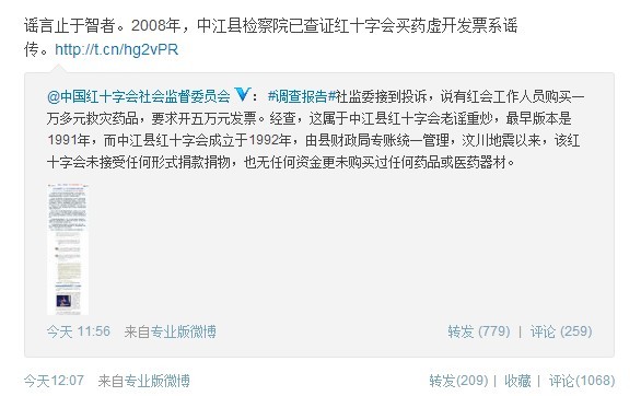 红十字会官方微博发布消息称“台湾红十字组织来电关注震情并表示愿意提供可能的救助。” 而随后有网友跟帖称“中国红十字会总会要求台湾红十字会先援助五百万人民币再进入灾区救助。”引发众多网友质疑声声。
