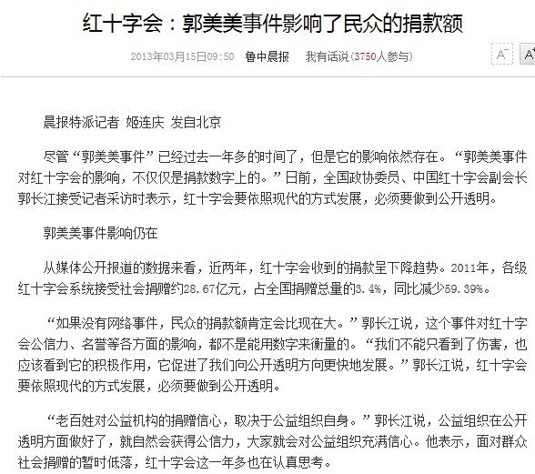 1. 红十字会副会长承认郭美美事件影响仍在