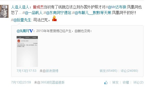 好久不上围脖(眭军杰,媒体人):长沙曾成杰非法集资案,不应因他罪行深重就被剥夺家人见他最后一面的权利,所以此时长沙中院湖南高院费尽口舌诉说曾的罪行也枉然;同样,不应该曾成杰家人最后权益被剥夺就想当然认为曾的集资套现行为是正当的是被冤枉的,所以盲目质疑长沙中院的行为也应该去找找依据。