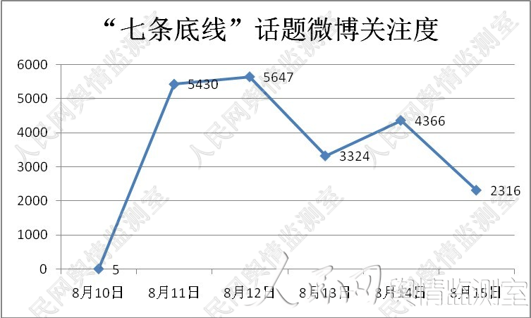 据人民网舆情监测室观察,8月10日起,网络上就已经出现了”七条底线”话题的消息。