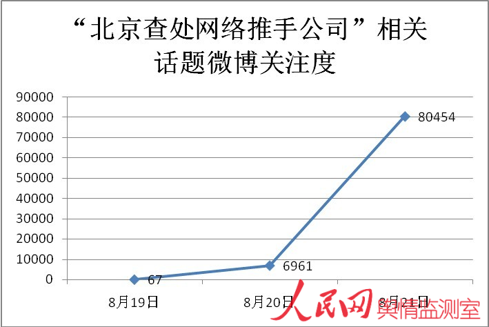 8月19日以来“北京查处网络推手公司”话题微博关注度