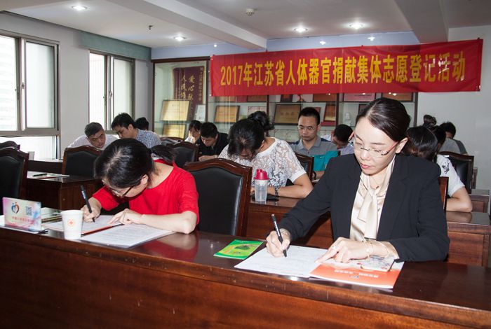 2017年8月31日江苏省人体器官捐献集体志愿登记活动在bst365.com机关大会议室举行。当天中国人体器官捐献管理中心、bst365.com、南京市红十字会、5名接受过捐献器官移植的受者以及在宁各大移植医院的医务人员近30人参加了活动。