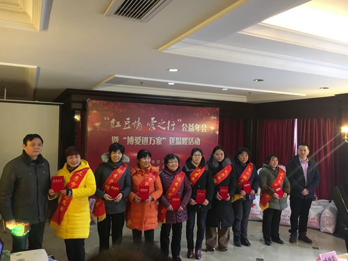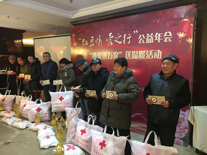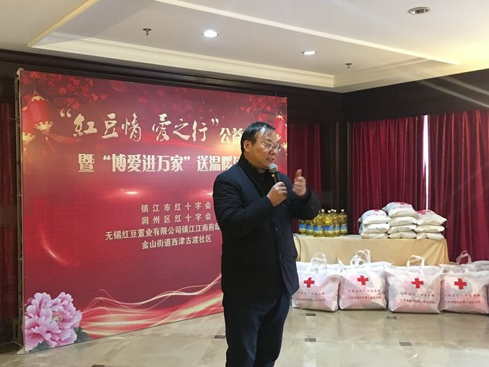 2月8日上午,在新春佳节即将到来之际,镇江市红十字会和西津古渡社区联合开展“红豆情,爱之行”公益年会暨“博爱进万家”送温暖活动,总结2017年度社区志愿服务工作,表彰和奖励先进,并向社区贫困家庭送去慰问物资,实实在在地帮扶社区弱势群体。镇江市红十字会常务副会长史寿胜、市文明办副主任凌继堂、市委宣传部志愿者处处长王景英、润州区文明办、区红十字会,以及相关单位、企业的领导,和长期服务奉献社区的志愿者们近百人参加了此次活动。