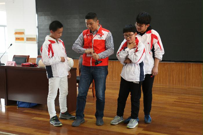 为深入推进平安校园建设,强化学校应急救护知识普及工作,在港闸区红会大力支持和协调下,由丁老师主讲,区红会讲师团其他成员为助理,共同完成了本次培训活动。丁医生从防溺水、防触电、防煤气中毒、防气道梗阻以及心肺复苏五个方面,进行了理论知识及实操要领培训,丁医生语言生动幽默,讲解深入浅出,浅显易懂,全程不断与学生互动交流,在轻松愉快的氛围里结束了他精彩的培训。