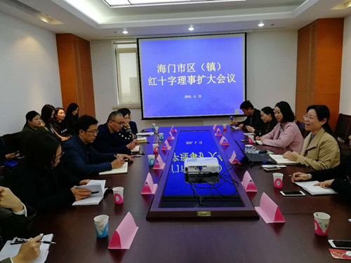 4月13日下午,海门市红十字会召集全市12个区镇的红十字会会长和相关工作人员,召开基层红十字工作会议,传达上级红十字工作精神,研究当前基层红十字工作特点,探索红十字工作新方法新思路,市红十字会常务副会长宋爱武主持会议。