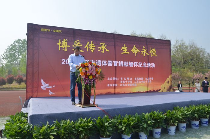 镇江市红十字会常务副会长史寿胜指出,遗体捐献,为医学教学研究做出了极大贡献,被尊称为“无语体师”;器官捐献,及时挽救他人的生命,使一个个濒临绝境的生命之花得以重新绽放,被敬赞为“生命接力”,这份“生命的馈赠”,是造福人类的高尚行为,是人道、博爱、奉献红十字精神的具体体现。史会长向遗体器官捐献者及其家属致以崇高的敬意,向长期以来关心和支持遗体器官捐献事业发展的各级各部门、社会爱心人士和新闻界的朋友们表示衷心的感谢。