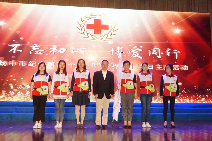 扬中市委副书记马家胜出席活动并致辞,他说,习近平总书记指出,“红十字是一种精神,更是一面旗帜”。这面旗帜,指引着社会各界开展人道救助、弘扬博爱精神,也是当前我市创建全国文明城市、建设“强富美高”新扬中的重要力量。他希望,市红十字会再接再厉,以更加优异的成绩服务群众、回报社会;各级各部门要大力支持、主动配合红十字会工作;并衷心希望镇江市红十字会以及社会各界人士,一如既往地关心支持市红十字事业的发展,让博爱的阳光洒满扬中的每一个角落。活动中,马家胜与4名优秀红十字志愿者共同启动了大爱相“髓”——白血病关爱项目;史寿胜、卜兴荣为“2017年度优秀红十字志愿者”颁奖;常云为红十字养老志愿服务团队授旗;孙冬梅、陆国平向“社区、农村、学校、机关、企业、家庭”赠送急救包和急救教材。