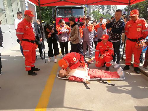 二是组织凤城红十字救援队开展地震演练。凤城红十字救援队队员分为警戒组、搜救组、救护组和心理疏导组,各司其职。警戒组成员率先将现场进行警戒,然后搜救组的队员将模拟伤者从废墟中依次救出,随后,交给救护组进行抢救,最后交给心理疏导组对灾民进行心理疏导。两个小时的演练,展示了地震灾情发生后人员疏散、紧急救援、医治救护、转移伤员、灾民安置等现场逃生和救护场景。