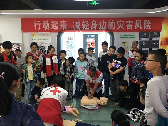 5月12日下午2点,靖江日报小记者及其家长一行40人走进市红十字会应急救护培训基地,救护培训老师组织他们学习了红十字知识,LED显示屏模拟出现地震、溺水、火灾等场景,救护培训老师耐心地教他们在遇到这些突发意外灾害时如何沉着冷静地去减轻灾害风险,地震逃生注意事项、心肺复苏操作、急救绳结的打法等急救知识让他们连称受益匪浅。