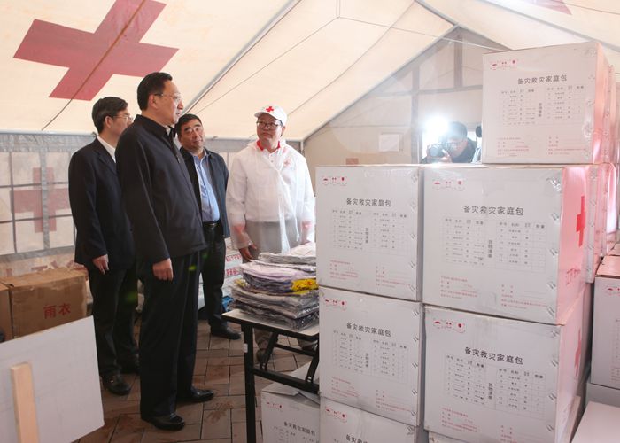 省红十字会党组成员、副会长赵凯陪同副省长缪瑞林视察了红十字社会捐赠物资接收点、物资仓库、心理援助站和帐篷学校,认真查看省红十字会下拨的“家庭包”等救灾物资,详细询问物资接收、志愿服务、心理援助以及开展防灾减灾知识培训的有关情况,对红十字会积极动员社会力量开展救灾救助工作给予了充分肯定。