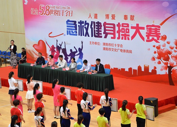 5月8日下午,溧阳市红十字会联合市文广体局在市奥体国际花园体育馆举办了纪念五·八世界红十字日暨“白金十分钟”急救健身操大赛。溧阳市政府副市长、市红十字会会长陆慧琦参加此次活动。溧阳市红十字会分别对白血病、尿毒症等特困患者进行了临时救助,走访慰问了培智学校和慧心康复中心,给孩子们送去了温暖和关爱。溧阳市昆仑街道红十字会对辖区10多户困难残疾人家庭进行走访慰问,每户发放2桶食用油和1000元慰问金。