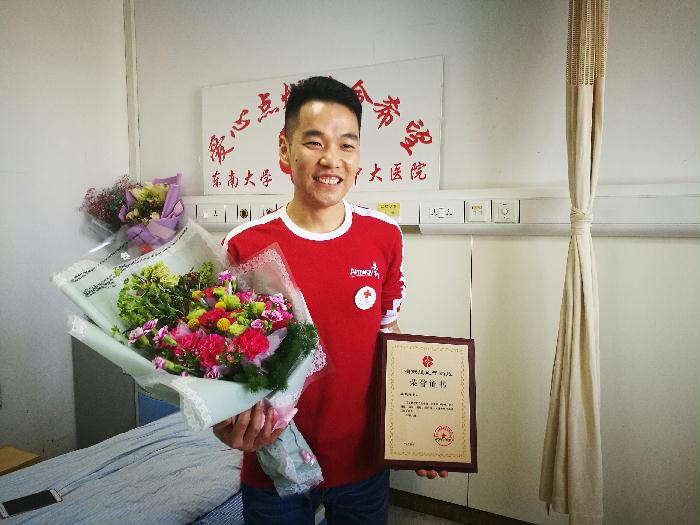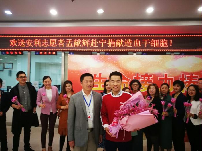 5月3日下午14点45分,在南京东南大学附属中大医院,安利南通分公司的经销商孟献辉,成功捐献326ml造血干细胞混悬液,为一名18岁的白血病男孩送去生命的希望。孟献辉成为南通市第42例,全省第645例,全国第7281例成功捐献造血干细胞志愿者,他用大爱为自己的青年节和即将到来的“5.8世界红十字日”献上了一份珍贵的礼物。