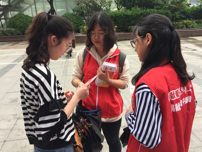 为普及造血干细胞捐献知识,扩大已经入库的志愿者对捐献知识的进一步了解并继续保留在中华骨髓库。5月5日,镇江市红十字会组织江苏大学20余名学生走上街头,在人流密集的万达广场、苏宁广场开展造血干细胞捐献知识的宣传活动。同学们身穿造血干细胞捐献宣传马甲,制作了卡通生动的捐献知识展板、打出了 “心”“髓”我动,爱心惜传,点燃希望——宣传横幅、发放造血干细胞捐献知识的手册并向市民、商铺人员详细解读捐献知识,活动当天发放宣传册500余份。