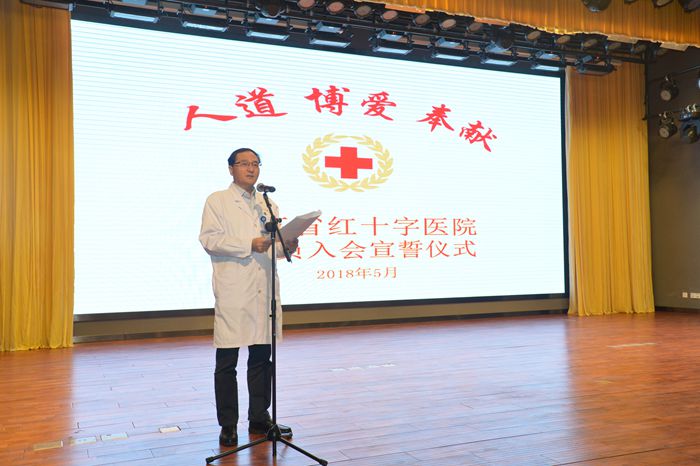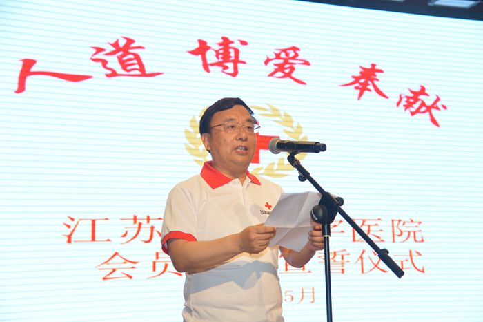 省人民医院自1987年冠名为江苏省红十字医院以来,勇担社会公益责任,大力弘扬“人道、博爱、奉献”的红十字精神,并在2016年12月被省红十字会授予红十字基层组织“先进集体”。赵俊书记在讲话中回顾了红十字会的历史及医院相关工作,他要求新会员牢记誓词,践行誓言,弘扬“人道、博爱、奉献”的红十字精神,坚持以习近平新时代中国特色社会主义思想为指导,始终把人民群众放在心中最高的位置,不忘初心,牢记使命,真心关爱群众,为保护人民生命健康,做出自己的贡献。