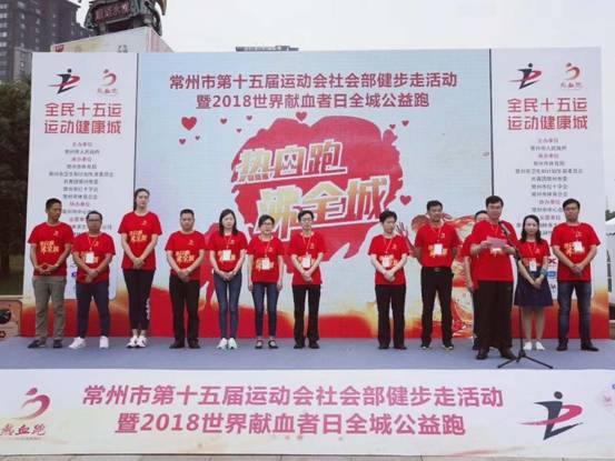 为迎接“6·14”世界献血者日的到来,6月10日,由常州市人民政府主办,常州市红十字会、常州市体育局、常州市卫计委、常州团市委、常州市体育总会联合发起的“热血跑•沸龙城”——庆2018•世界献血者日健步走活动在环球恐龙城迪诺水镇举行。常州籍著名运动员、女排奥运冠军、无偿献血形象大使张常宁亲临活动现场。感召更多的市民,支持无偿献血公益事业,为生命的传递奉献爱心。