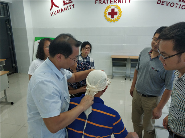 为强化急救技能,有效履行应急救援职责。6月12日下午,按照年度训练计划,常州市新北区红十字会星火救援队第三次强化集训在常州技师学院开展。此次集训由救援队队长蒋波老师组织,内容为头部及单肩的包扎。