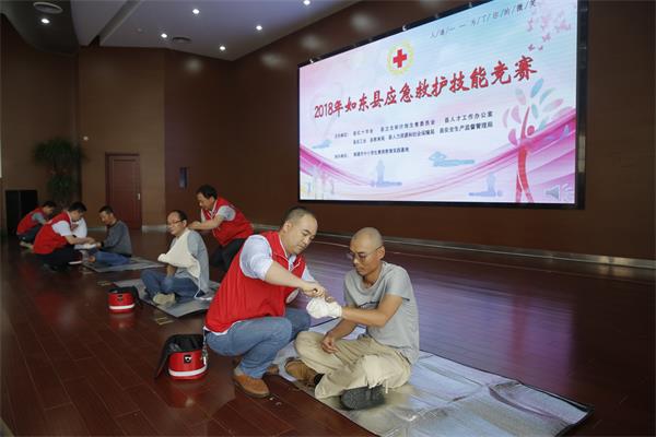 由如东县红十字会、县卫生和计划生育委员会、县人才工作办公室、县总工会、县教育局、县人力资源和社会保障局、县安全生产监督管理局联合举办的“2018年全县应急救护技能竞赛活动”,在如东县救护培训中心进行,来自全县二级以上医疗单位、镇区红十字会、乡镇卫生院和村卫生室共同组建的17支代表队51名选手参加了竞赛。活动主办单位领导和全县各镇区红十字会、各学校各医院红十字会负责人以及部分红十字志愿者近200人参加了活动。