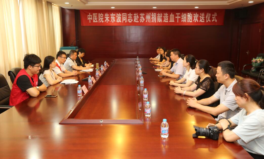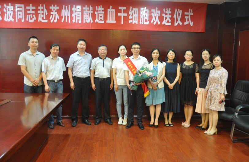 6月20日上午,朱东波同志赴苏州捐献造血干细胞欢送仪式在张家港市卫计委二楼会议室隆重举行。张家港市卫计委副主任朱长春、市红十字会副会长朱光华、秘书长董洁,张家港市中医院院长王建春带领部分班子成员及中层干部、市红十字无偿捐献造血干细胞志愿服务队队长袁辉以及朱东波的家人等约15余人出席了仪式。欢送仪式由市红十字会副会长朱光华主持。