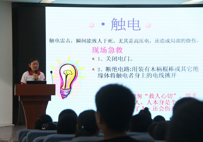 结合历年暑期频发的溺水、火灾、触电等安全事故,老师们重点为同学们讲解了溺水、火灾、触电等现场的安全救护,把复杂的急救流程编辑成简单易懂的操作与同学们进行了互动演练:如心肺复苏、气道梗阻、触电及水中救护等等,同学们参与性踊跃,互动氛围活泼。老师们要求暑期同学们不管是在家还是外出旅行,要文明礼让,遵守秩序,远离危险区域,提高安全意识。一旦发现危险现场要大声呼救,拨打110、122或119。