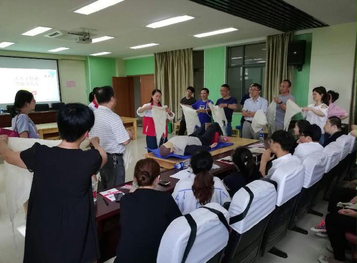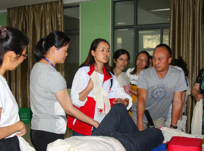 6月28日至29日,无锡市锡山区云林街道红十字会组织辖区各学校老师进行初级救护员培训。培训分理论和实际操作两部分,主要包括救护新概念、心肺复苏、创伤救护技术(止血、包扎、骨折固定、伤员搬运)、常见急症及意外伤害救护技术和防灾避险逃生基本知识和技能。在自救和他救的现场模拟活动中,伴随着急促的呼救和紧张的动作,每位学员紧张而有序在抓住4分钟“黄金时间”进行现场演练。