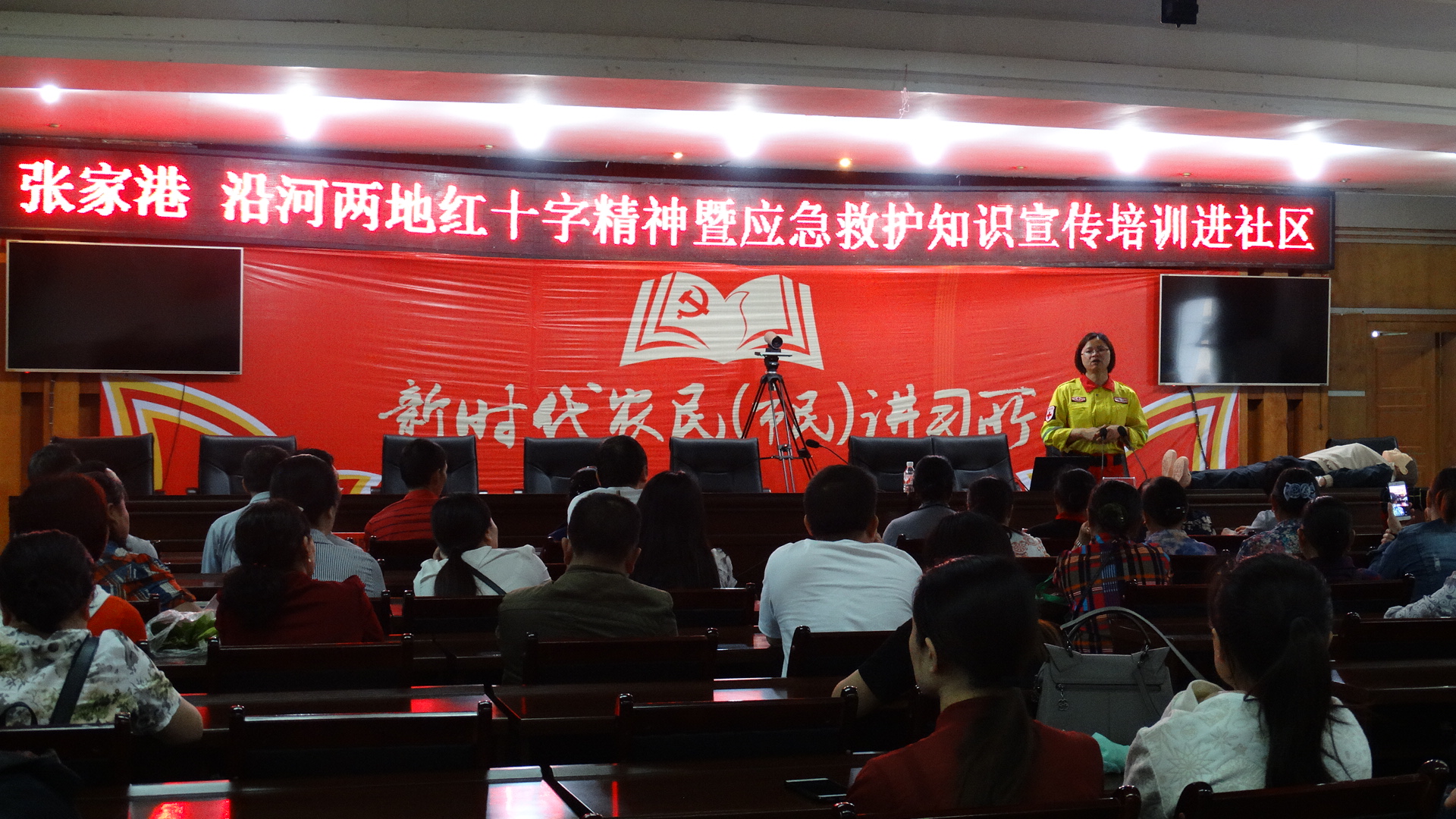 6月1日上午,沿河县红十字会组织200名社区居民参与应急救护培训,培训分组同时进行。团结街道的社区居民由救护师周继清与陆黎丽在县行政中心会议室培训,刘丽华与陈建弘到和平街道为居民培训。