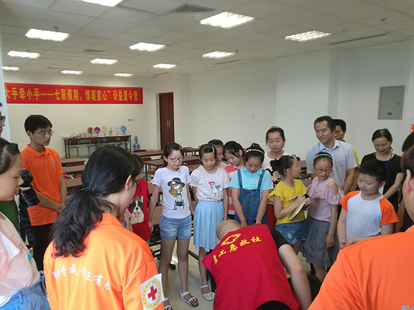 为确保活动落地生根、有效推进,常州市红十字会在项目进行中,采取跟踪问效、派员参与的方式掌握全程动态。7月初,市红十字会选派机关工作人员参与,赴安徽大别山区开展助学助困活动。10日,市红十字会秘书长范为民带队到常州工学院实地调研活动开展情况。看到大学生志愿者用心行动之后,受益儿童拿到学习用品开心的笑容,和孩子们学习红十字救护知识在课堂的认真劲,调研人员欣然点头并积极参与。