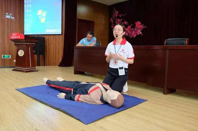6月30上午,无锡市锡山区红十字会在东北塘街道实验小学进行专项培训,指导老师、学生实施正确的心肺复苏以及使用自动体外除颤器(AED)。