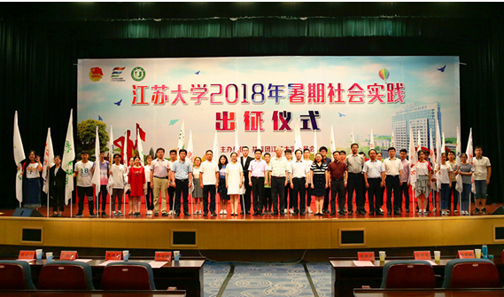 会上,校团委书记、江苏大学红十字会秘书长王丽敏介绍了江苏大学暑期社会实践2017年的主要成绩及2018年社会实践的总体筹备情况;管理学院一带一路团队代表龙亦青、机械学院大眼睛支教团队代表齐是、艺术学院“寻访抗战老战士”团队代表承洋、财经学院博爱青春团队代表张艳丽分别作了实践经验分享;校党委常委、宣传部部长金丽馥宣读了《关于公布江苏大学2018年暑期社会实践重点团队的通知》;随后,与会领导与嘉宾分别为2018年暑期社会实践9个主题团队代表、8支暑期支教团队代表、9个省市级博爱青春立项项目团队代表授旗;接着,资助企业代表向荣集团张祯明总经理对我校社会实践团队代表提出了殷切希望。