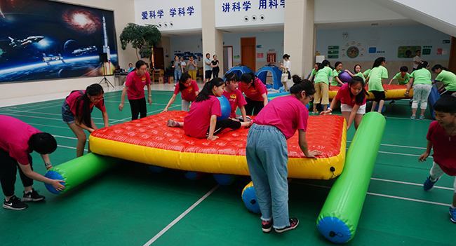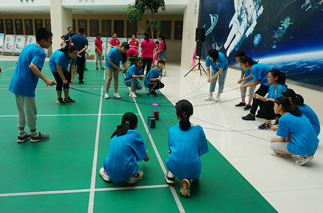 本次夏令营为期一天,安排了红十字应急救护知识培训和团队拓展活动。上午,常熟市红十字会应急救护培训师黄雪芳为小营员们带来了一堂生动的应急救护培训课,讲授了如何正确有效拨打急救电话、心肺复苏操作要领,以及在对他人展开急救时如何做好自我保护。一些小营员还亲身实践,巩固学习成果。在下午的团体拓展活动中,同学们分组参加了“步步高”“生肖密码”“时代列车”和“勇往直前”四个拓展活动。这些拓展训练都是团队游戏,需要队员们发挥团队协作能力,相互体谅、相互扶持,处处体现了“人道、博爱、奉献”的红十字精神。