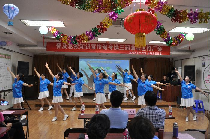 7月4日上午9点,南京市鼓楼区红十字会在幕府山街道云谷山庄社区大会议室,开展红十字急救知识第三部曲《灾难来临》MV广场健身操推广宣传会。13个街道14支红十字舞蹈队队长及助理,70多名舞蹈骨干参加《灾难来临》MV广场健身操推广宣传会。在推广培训会上鼓楼区红十字会工作人员介绍了红十字急救知识三部曲。《白金十分钟》、《海姆立克的拥抱》广场舞和《灾难来临》MV广场健身操第三部曲的内容。舞蹈老师用好记文字、歌词、音乐、肢体语言,生动展示急救知识内容、急救方法、急救技能。老师在培训会上讲的精彩、学员在培训会上听的认真。幕府山街道舞蹈队李队长说不但学会广场舞、健身操还学会急救知识,重要的是可以拯救生命。